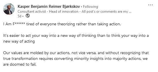 Although I thought I understood systems thinking, it was only once I had become aware of our individual role, our agency in creating and sustaining the overall system that things really clicked.